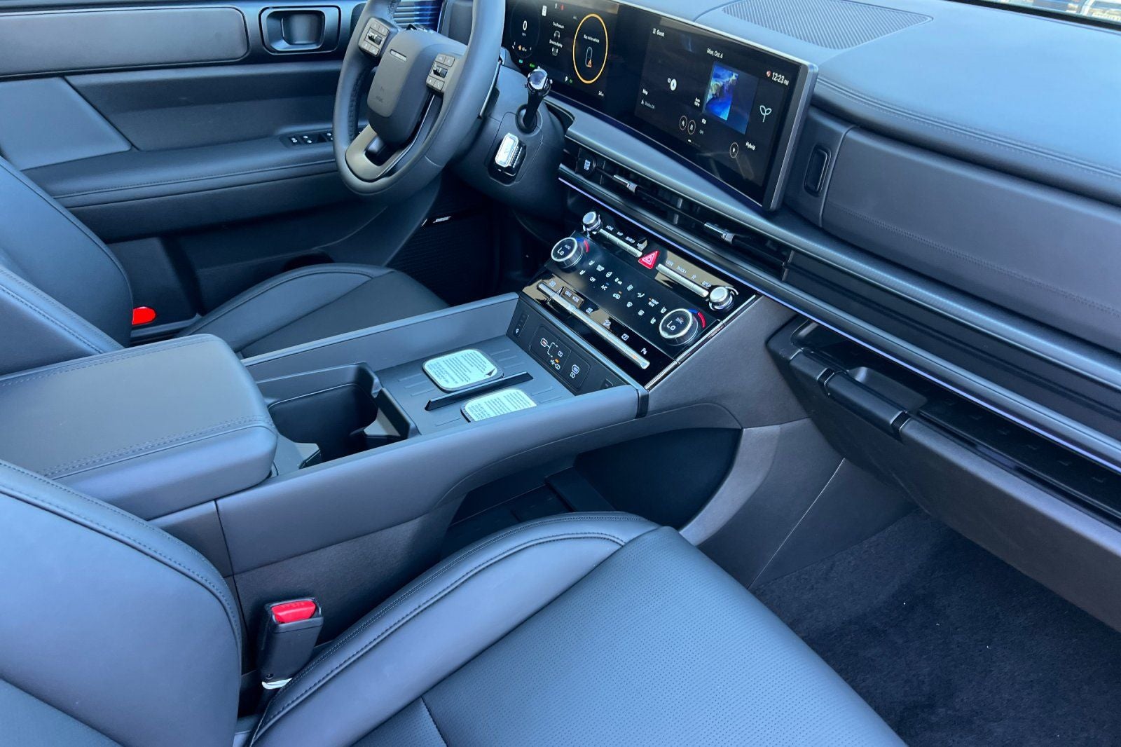 - Radio: AM/FM/HD Bose Premium Audio System -inc: 12 speakers including subwoofer, external amplifier, 12.3" wide touchscreen, wireless Apple CarPlay and Android Auto, Bluetooth® hands-free w/wireless audio streaming, dynamic voice recognition, USB connectivity, SiriusXM, wifi hotspot, Blue Link connected car system, navigation system including traffic flow w/incident data via HD Radio (HERE), OTA updates and rear seat quiet mode