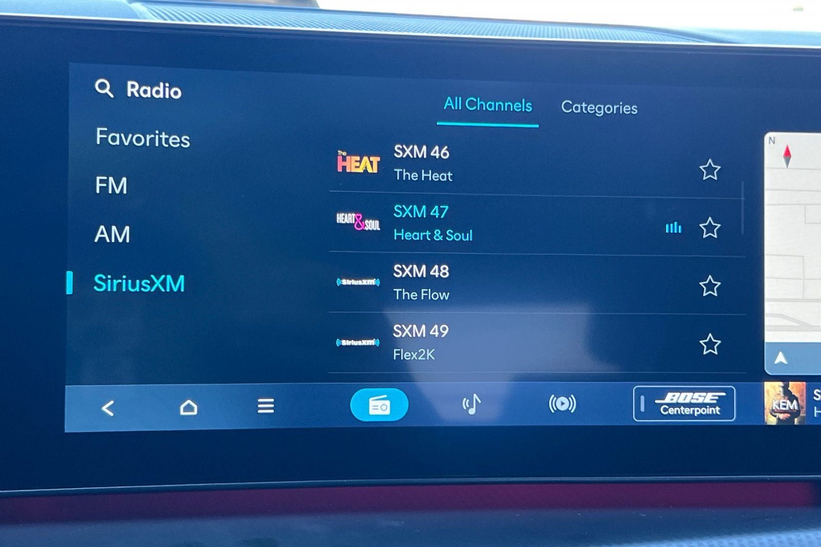 - Radio: AM/FM/HD Bose Premium Audio System -inc: 12 speakers including subwoofer, external amplifier, 12.3" wide touchscreen, wireless Apple CarPlay and Android Auto, Bluetooth® hands-free w/wireless audio streaming, dynamic voice recognition, USB connectivity, SiriusXM, wifi hotspot, Blue Link connected car system, navigation system including traffic flow w/incident data via HD Radio (HERE), OTA updates and rear seat quiet mode