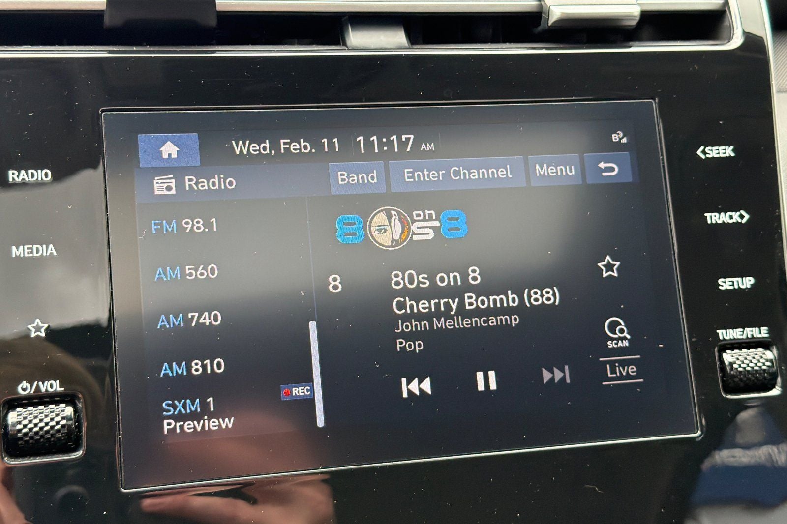- Radio: AM/FM/HD/SiriusXM Audio System -inc: 8" color touchscreen display w/6 speakers, Bluelink connected car system, Bluetooth® w/voice recognition, wireless Apple CarPlay and Android Auto and USB connectivity