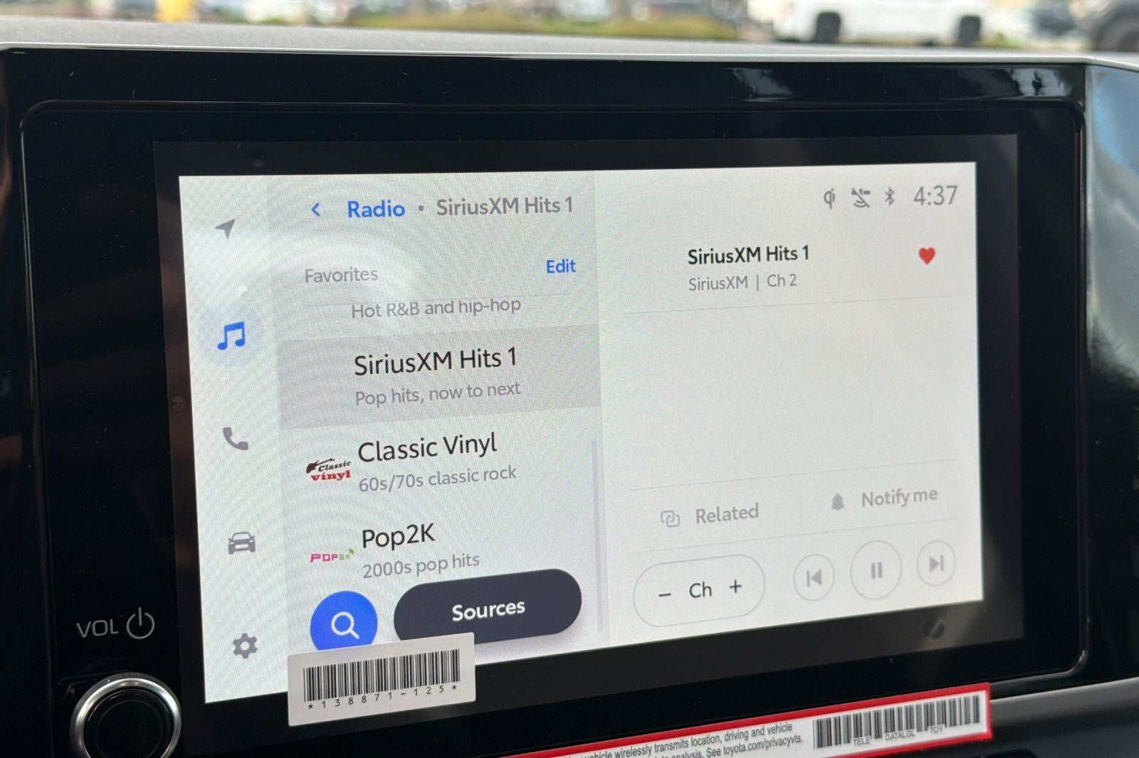 - Radio: 8" Toyota Audio Multimedia -inc: touchscreen, USB-A media port, hands-free phone capability and music streaming via Bluetooth® wireless technology, SiriusXM 3-month trial subscription, 6-speaker audio system, wireless Apple CarPlay compatibility and wireless Android Auto compatibility